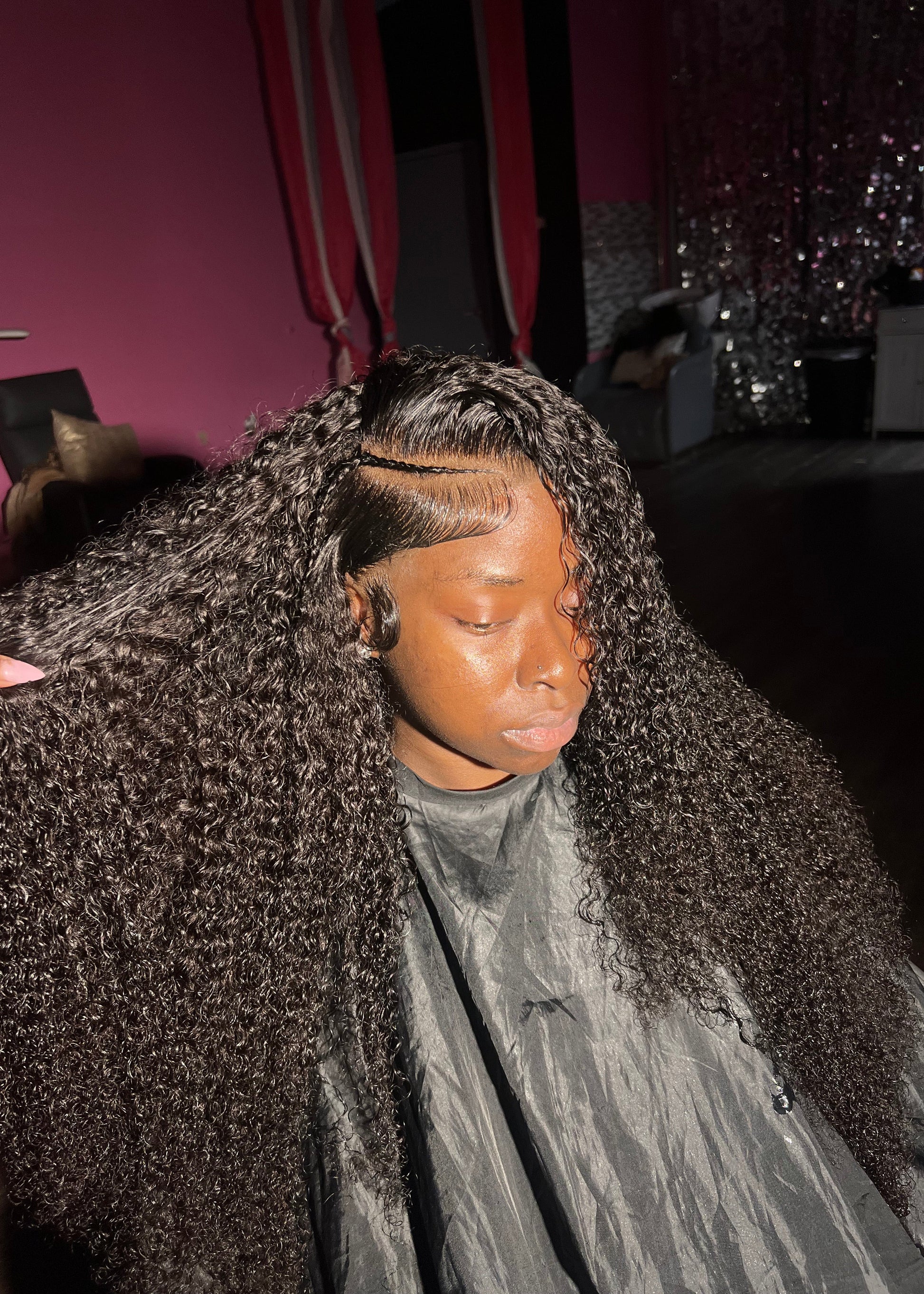 200% Density 32in depicted in the picture. This is the 4th install after purchasing over a year ago, so it may appear shorter and thinner than a new 200% density 32in italian curly wig. Frontal size will be true to size. The extra large cap size is best for anyone with locs, it does take longer to make so expect it to arrive 3-5 days later than normal.